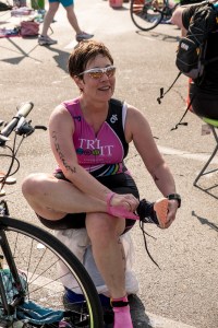 You pray you don’t have to use the bathroom after you swim when you wear the trisuit! When you and the suit are wet, you need to be double jointed to get it back on. In the end, wearing a trisuit is one’s badge of courage as it demonstrates strength and resiliency.